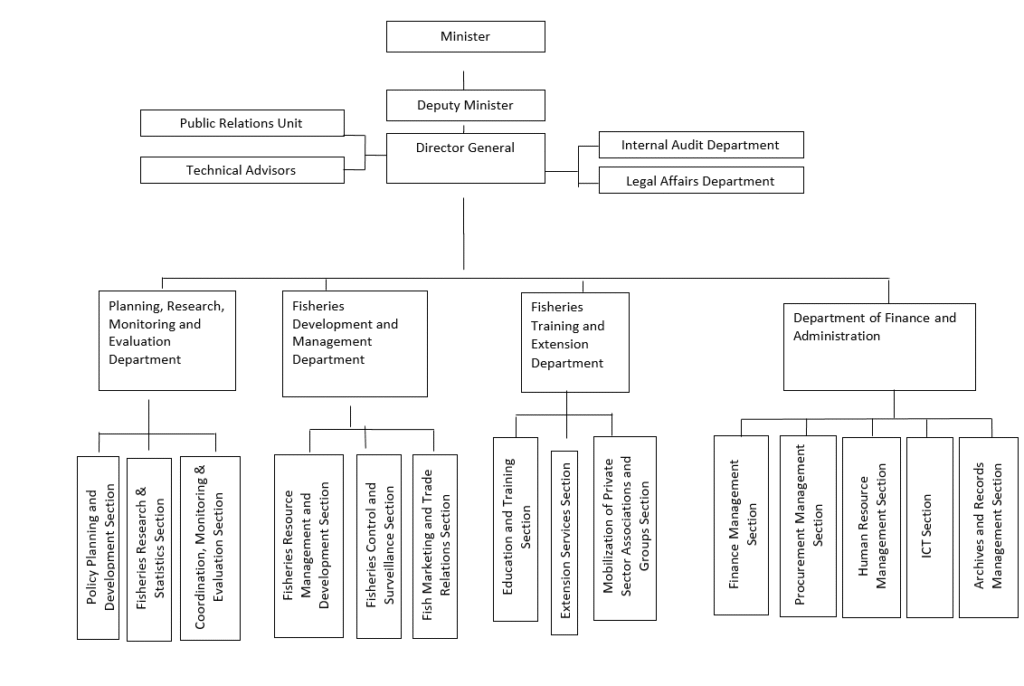 The Ministry was established in 1998 with the mandate of development, conservation and protection of fisheries and marine resources. It is the State’s institution charged with the sector policy formulation, implementation, supervising cooperatives structure and delivery of services to the citizens, monitoring and evaluation, quality control and safety. It is also mandated to establish an enabling environment that will encourage, facilitate and promote fishery, value-addition, and fishery business opportunities.